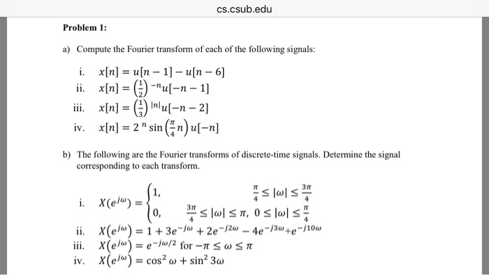 . The Fourier transform is an integral transform widely used in physics and engineering. Is an even signal. Compute the Fourier transform of each of the following signals a xt ˆ 1 cosˇt.